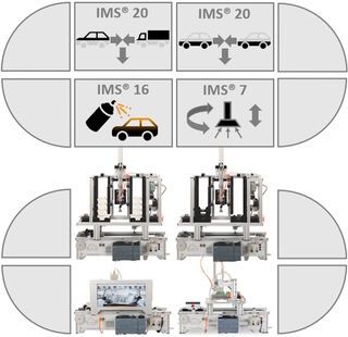 L’installation sert à l’apprentissage de toutes les étapes de travail nécessaires. De la conception à la programmation d’un API en passant par la structure mécanique d’une chaîne de production entièrement automatisée. Le parcours didactique mène des bases d’un sous-système individuel à la programmation avancée et à la mise en réseau d’installations complètes. Une voiture en plusieurs parties avec une platine fonctionnelle intégrée, un châssis et différentes carrosseries est totalement assemblée et peinte sur une chaîne de production entièrement automatisée.