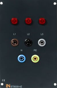Sortie triphasée, prises de sécurité 5x4 mm, 3 voyants lumineux, 1 UM