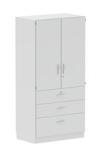 Armoire de laboratoire combinée SybaPro, avec 2 portes dans la partie supérieure ainsi que 3 tiroirs dans la partie la plus basse.